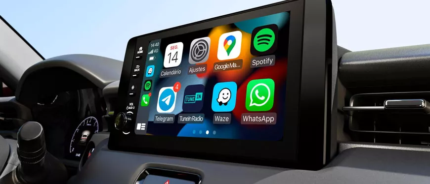 - Multimídia 8” com interface sem fio para smartphones